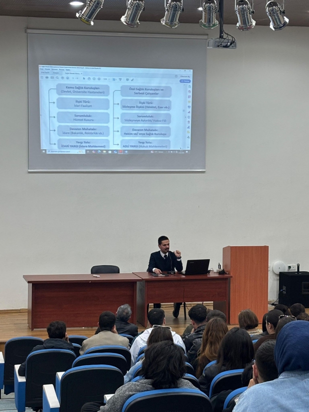 Sağlık hizmetlerinde hasta güvenliği, mesleki sorumluluklar ve hukuki süreçler açısından büyük önem taşıyan malpraktis konusu, etkinlikte kapsamlı bir şekilde ele alındı. Seminere akademisyenler ve öğrenciler yoğun ilgi gösterdi.