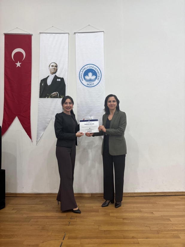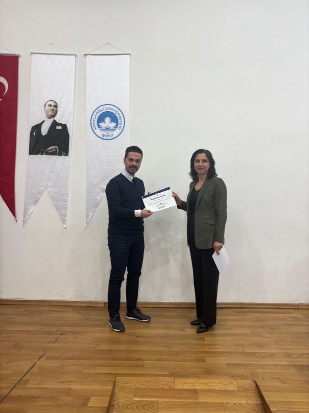 Etkinlik sonunda, Hemşirelik Bölüm Başkanı Prof. Dr. Ayfer Ekim Günaydın tarafından konuşmacı Av. Anıl Aktaş’a teşekkür belgesi takdim edildi.